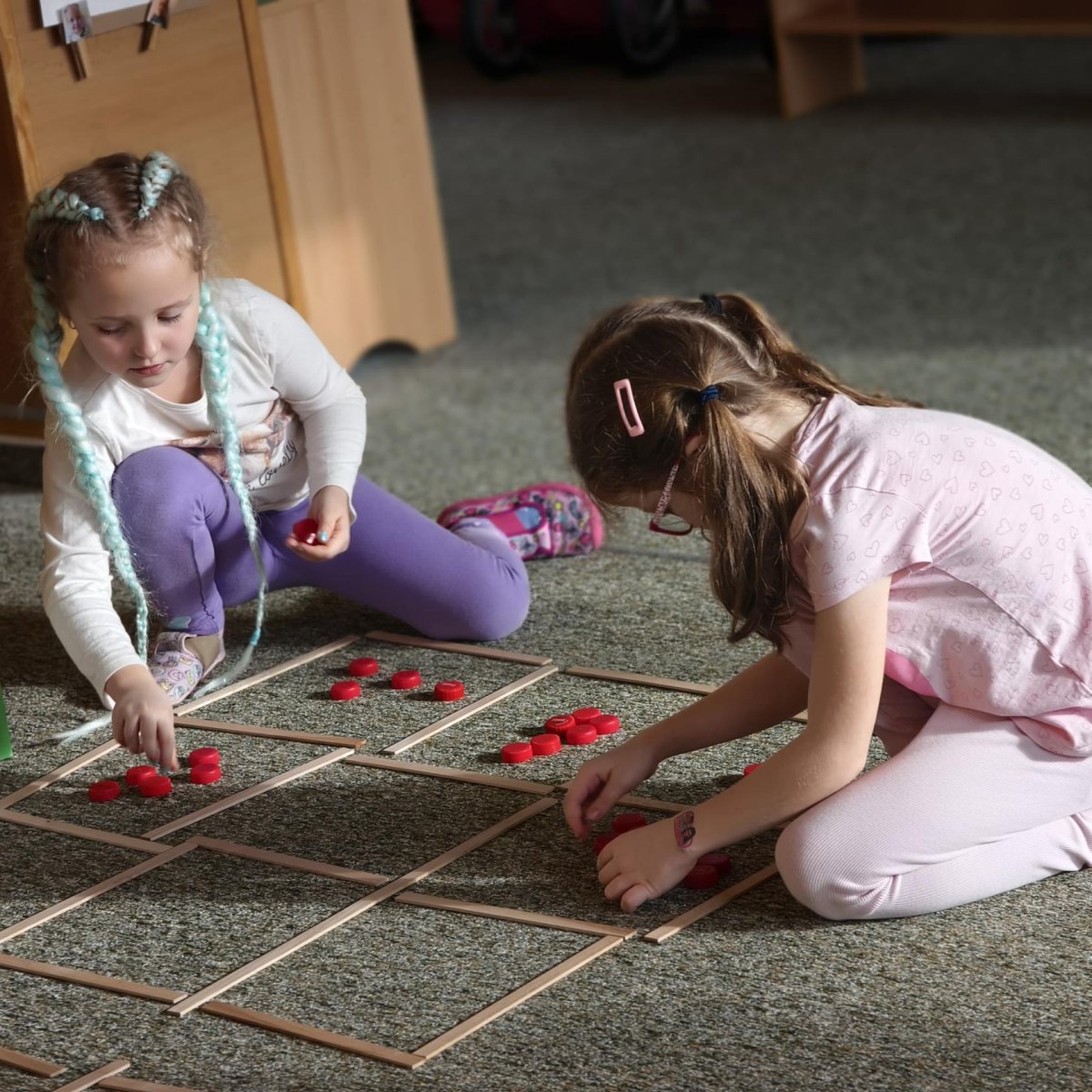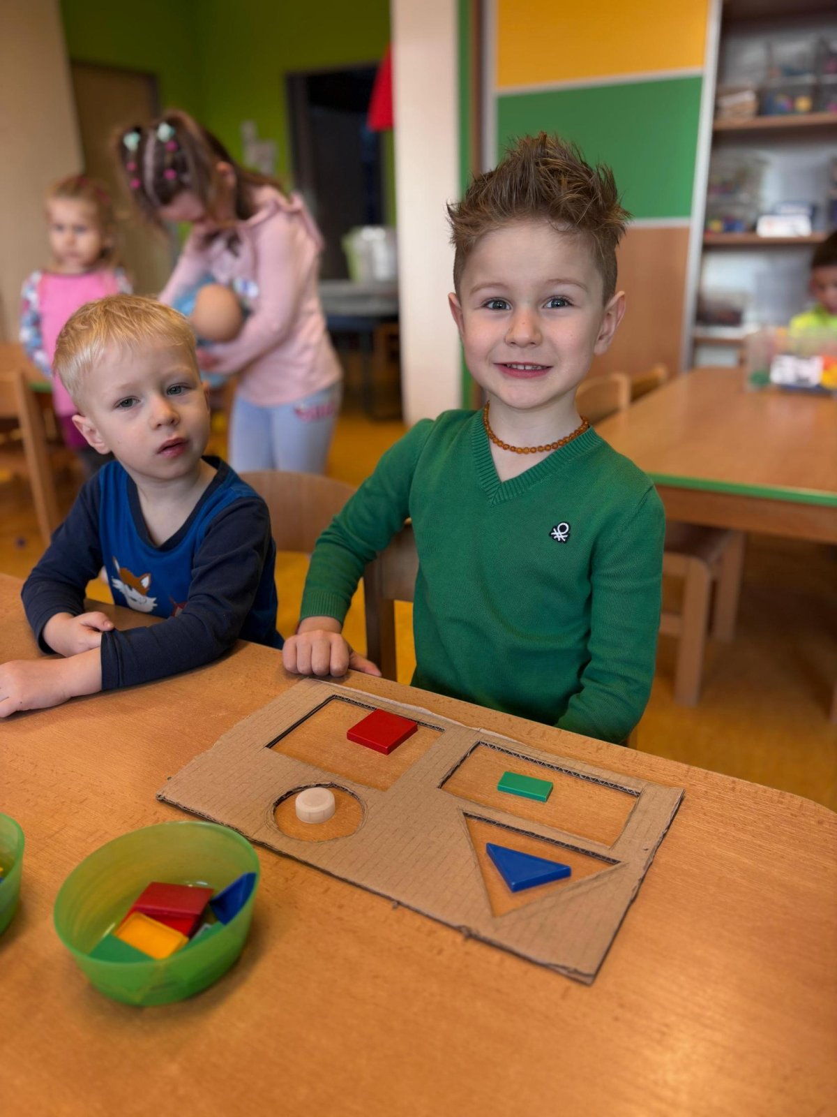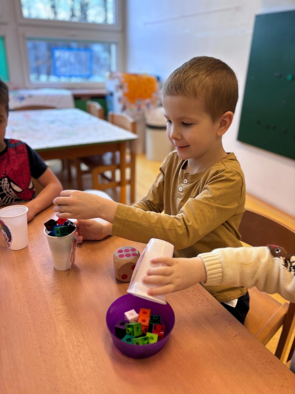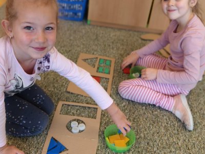 Karnevalový tematický celek jsme s dětmi prožívali opravdu naplno. Aktivity byli zaměřené na poznávání a upevňování geometrických tvarů a barev, které jsme procvičovali v různých hravých činnostech. Nechyběli ani matematické aktivity, při kterých si děti přirozeně rozvíjely své dovednosti. Vše probíhalo zábavnou formou a hravou formou, aby si děti nové poznatky mohly snadno osvojit a zažít radost z objevování.