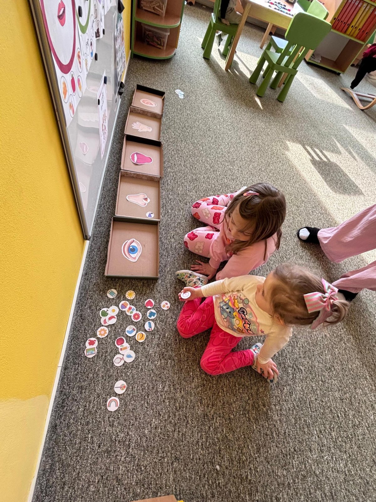 Během posledních dvou týdnů jsme si s dětmi povídali o našich pěti smyslech - hmatu, chuti, čichu, sluchu a zraku. Děti je objevovaly různými způsoby při hrách v centrech aktivit ve třídě i při zkoumání venku v přírodě. Zkoušely poznávat věci podle hmatu, vůně nebo chuti a naslouchaly zvukům kolem sebe. Přinášíme alespoň malou rekapitulaci z našeho společného objevování.