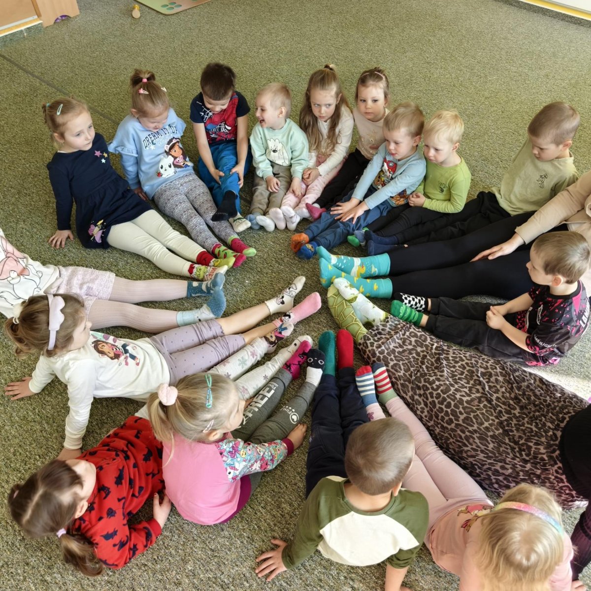 Dnes si naše ponožky ,, povídaly ,,. Připomněli jsme si, že být jiný je naprosto v pořádku. Stejně jako ponožky, i my jsme každý jedinečný - a právě v tom je naše krása. Děti si den užily hravě i tvořivě a společně jsme si povídali o respektu a odlišnosti.